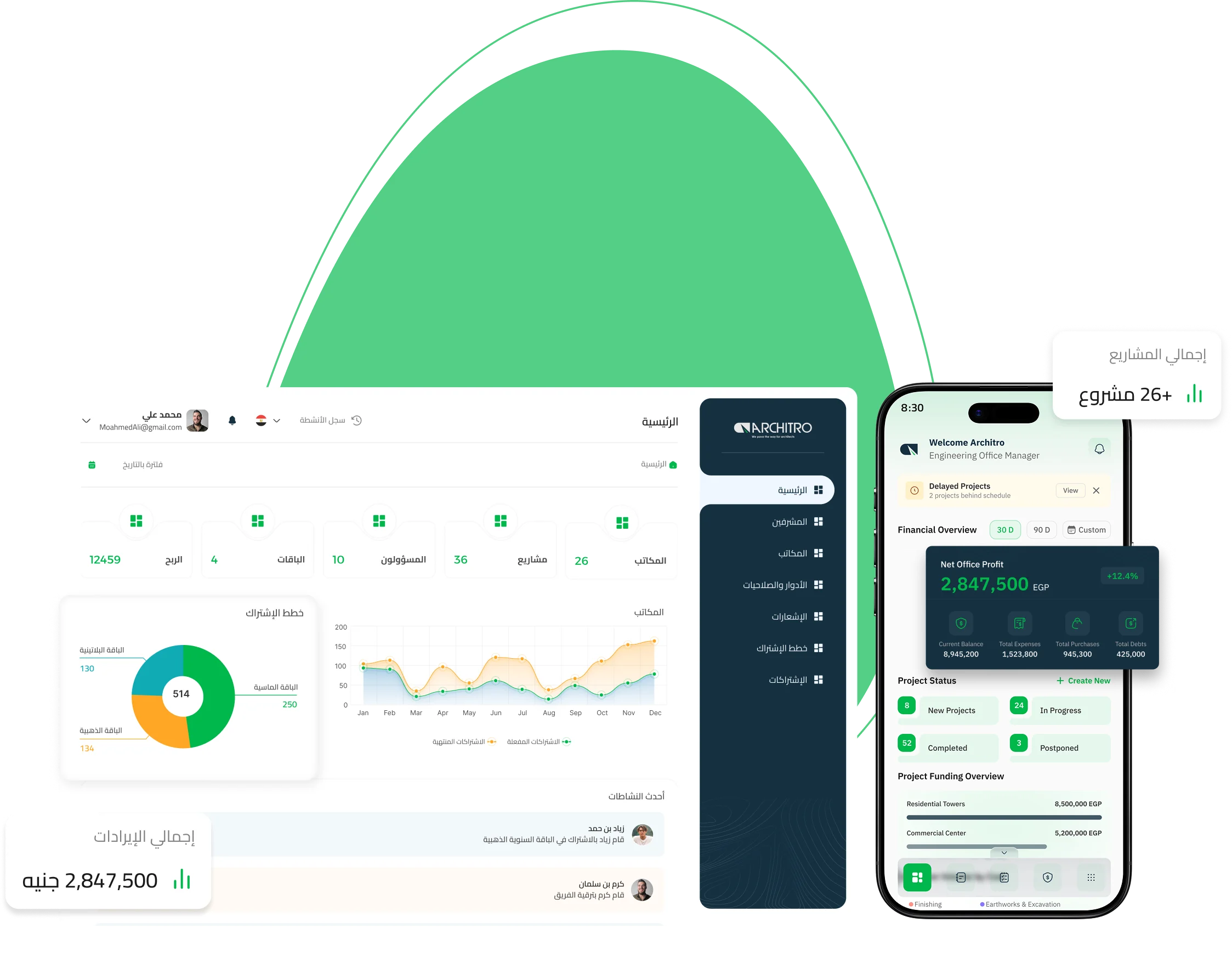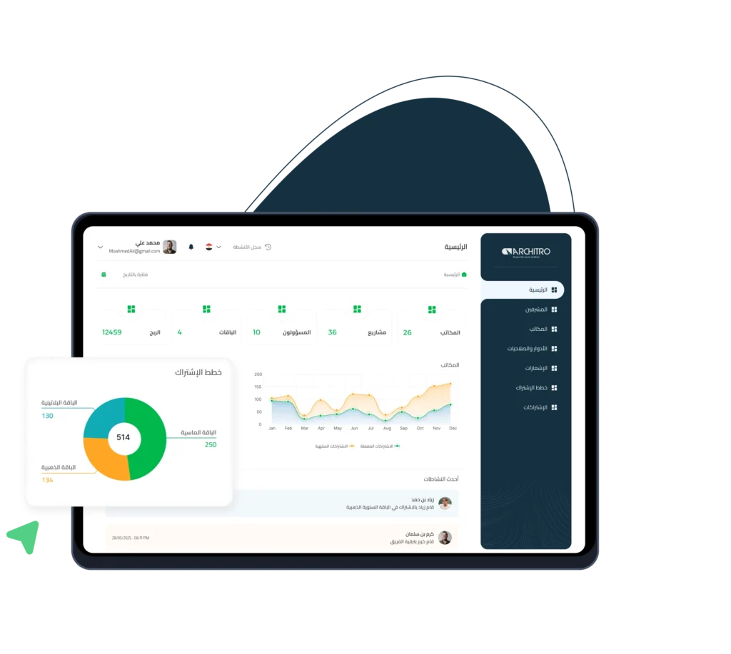 إدارة المشاريع، تنسيق الفرق، وتتبع الأداء المالي من لوحة تحكم واحدة موحدة.